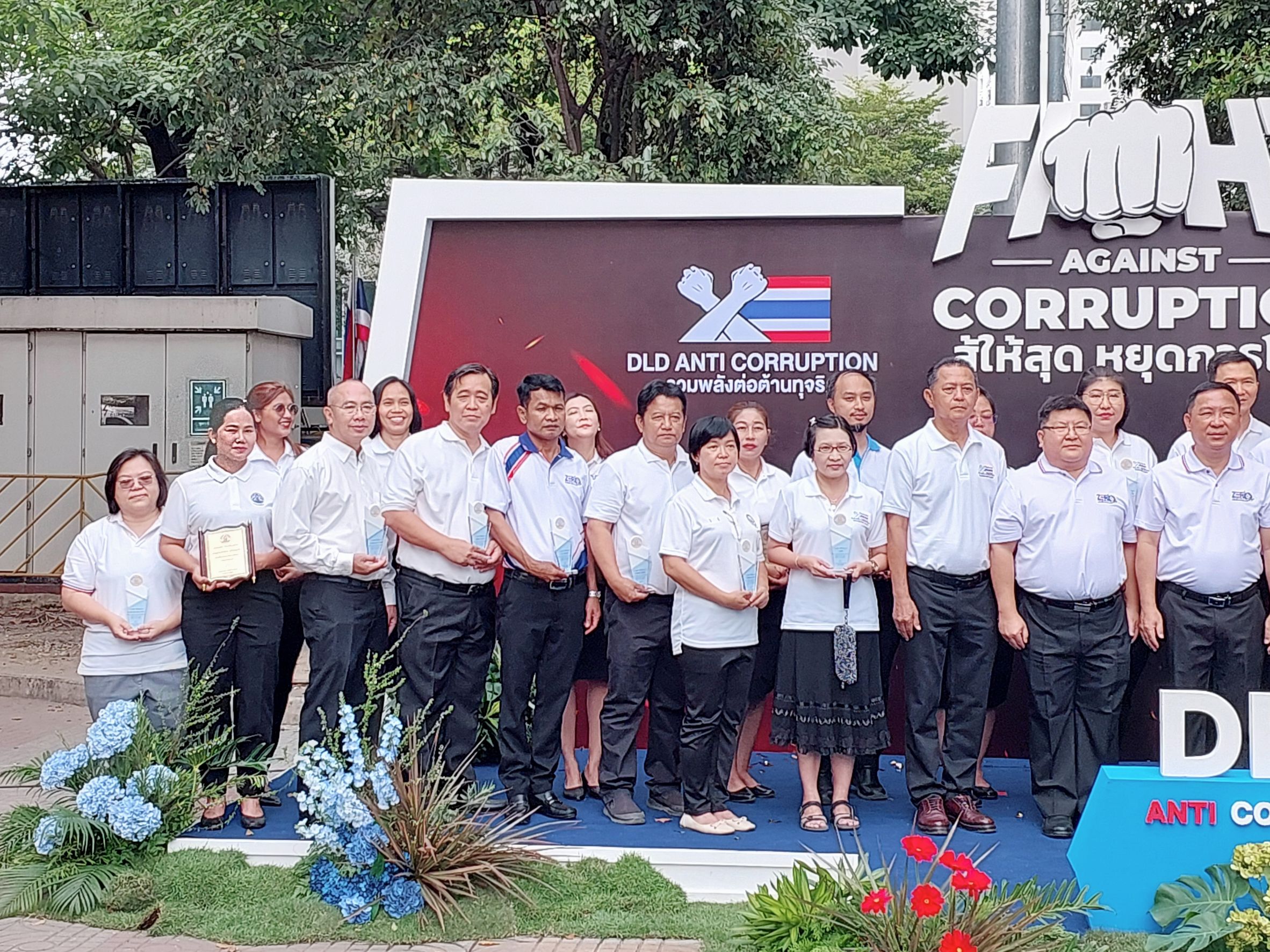 วันพุธที่ 11 ธันวาคม 2567 เวลา 08.00 น. นายสมเกียรติ กรอบแก้ว หัวหน้ากลุ่มพัฒนาระบบบริหาร พร้อมเจ้าหน้าที่ของหน่วยงาน เข้าร่วมการจัดกิจกรรมต่อต้านการทุจริตและประพฤติมิชอบของกรมปศุสัตว์ ภายใต้แนวคิด “FIGHT AGAINST CORRUPTION สู้ให้สุด หยุดการโกง” ประจำปีงบประมาณ 2568 ณ ลานหน้าเสาธงกรมปศุสัตว์ โดยมีนายสัตวแพทย์สมชวน รัตนมังคลานนท์ อธิบดีกรมปศุสัตว์ เป็นประธานในพิธี พร้อมด้วยนายสัตวแพทย์โสภัชย์ ชวาลกุล นายสัตวแพทย์ประภาส ภิญโญชีพ และนายพงษ์พันธ์ ธรรมมา รองอธิบดีกรมปศุสัตว์ ผู้อำนวยการกอง/สำนัก ปศุสัตว์เขต และเจ้าหน้าที่กรมปศุสัตว์ มีกิจกรรมเดินขบวนรณรงค์ต่อต้านการทุจริต เพื่อสร้างความตะหนักรู้ให้แก่ข้าราชการ ลูกจ้าง และพนักงานราชการของกรมปศุสัตว์ และประกาศเจตนารมณ์ร่วมกันในการต่อต้านการทุจริตคอร์รัปชันทุกรูปแบบอย่างจริงจัง โดยปฏิบัติหน้าที่ราชการอย่างซื่อสัตย์สุจริตและประพฤติตนตามรอยพระยุคลบาท โดยน้อมนำ สืบสาน รักษา และต่อยอดพระราชปณิธานของศาสตร์พระราชาผู้ทรงธรรม ด้วยความมุ่งมั่นในประโยชน์อันสูงสุดของประเทศชาติและประชาชน